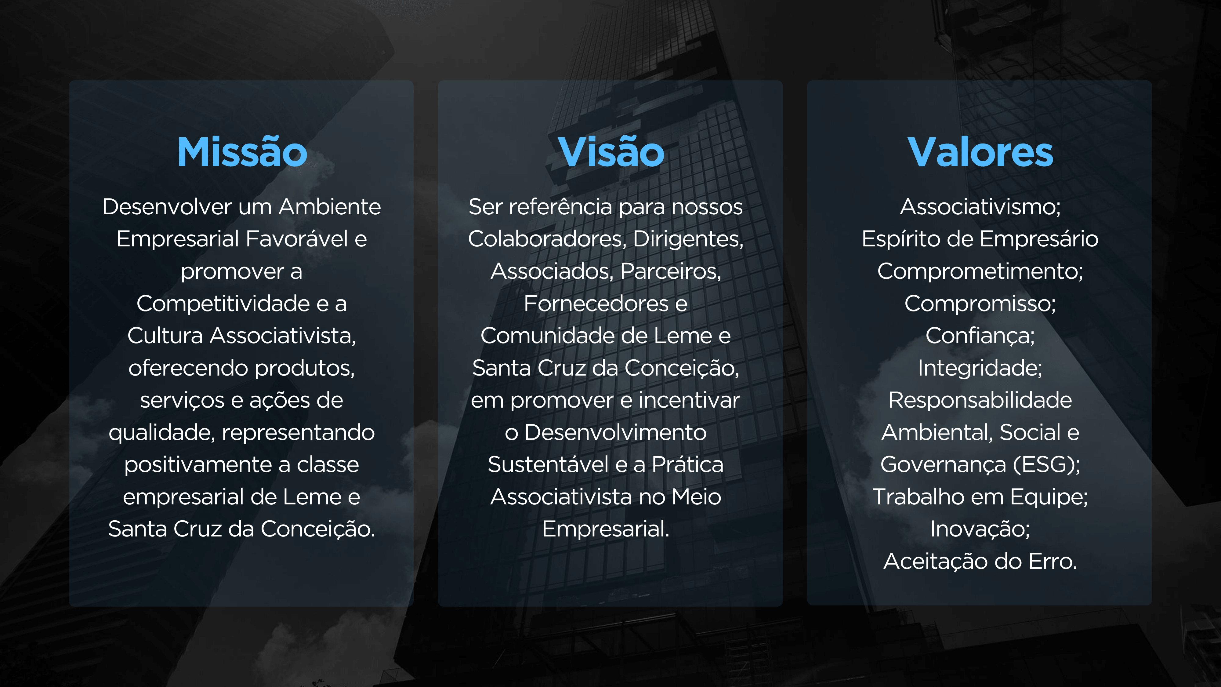 MISSÃO, VISÃO E VALORES